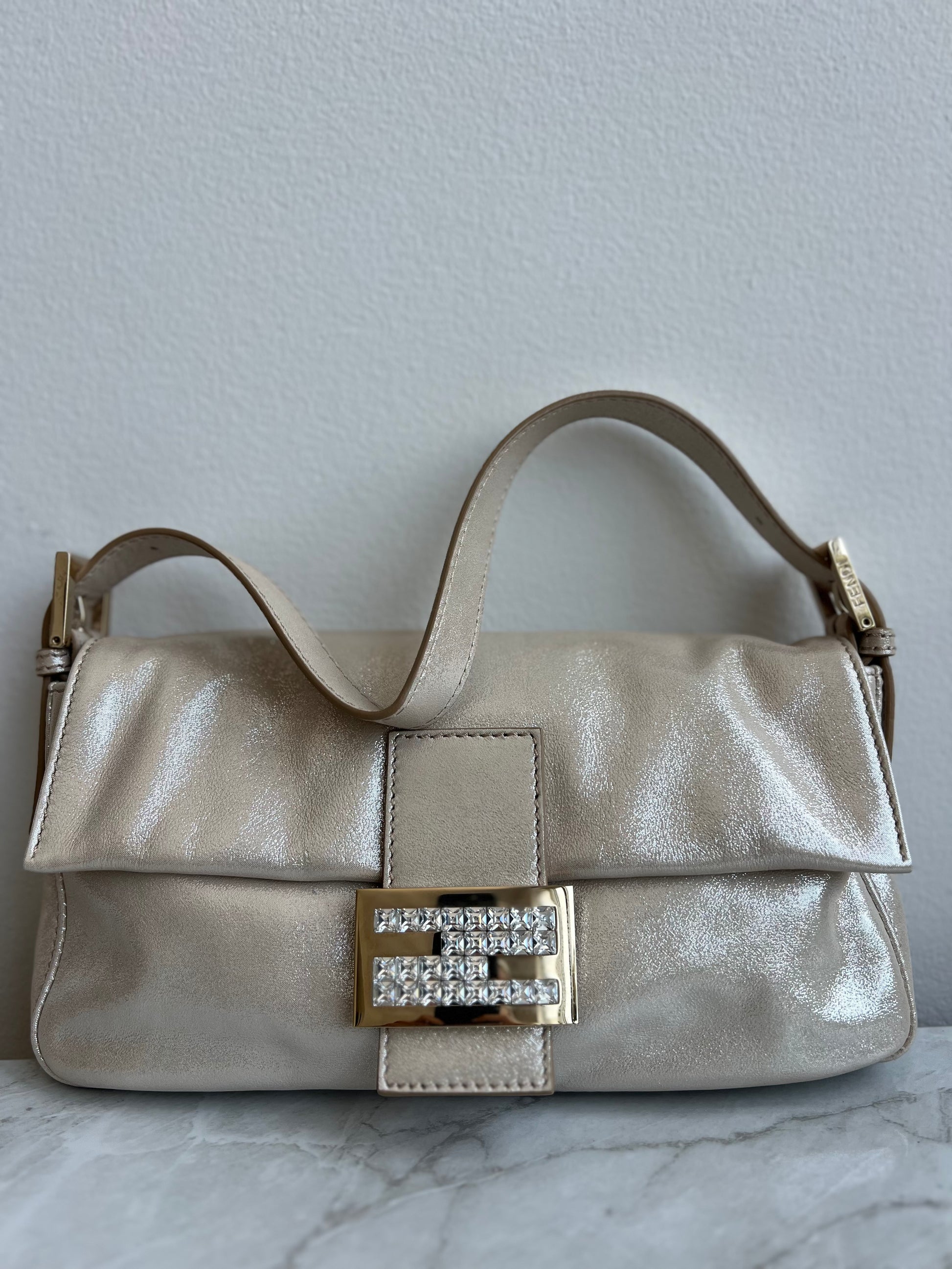 FENDI CHAMPAGNE RHINESTONE VINTAGE BAGUETTE